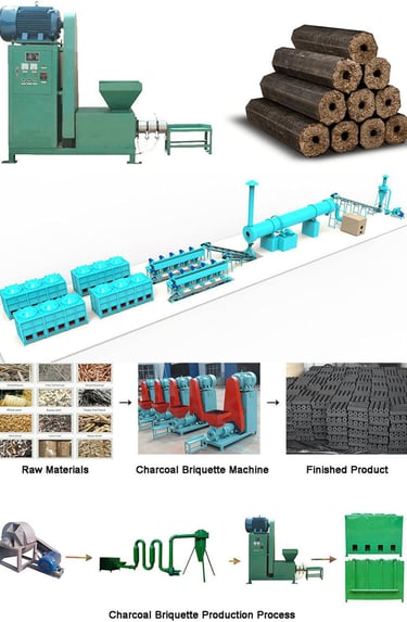 Charcoal fines are mixed with natural binders and compressed into charcoal briquettes for consistent size and shape.